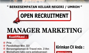 OPEN RECRUITMENT MANAGER MARKETING Kialifikasi: – Pria – Pendidikan min D3 – Berpengalaman di Travel min. 2 thn – Memahami tata cara pelaksanaan Haji dan Umroh – Memahami Wisata Halal Tour dan Internasional – Memiliki kemampuan Digital Marketing – Memiliki... selengkapnya